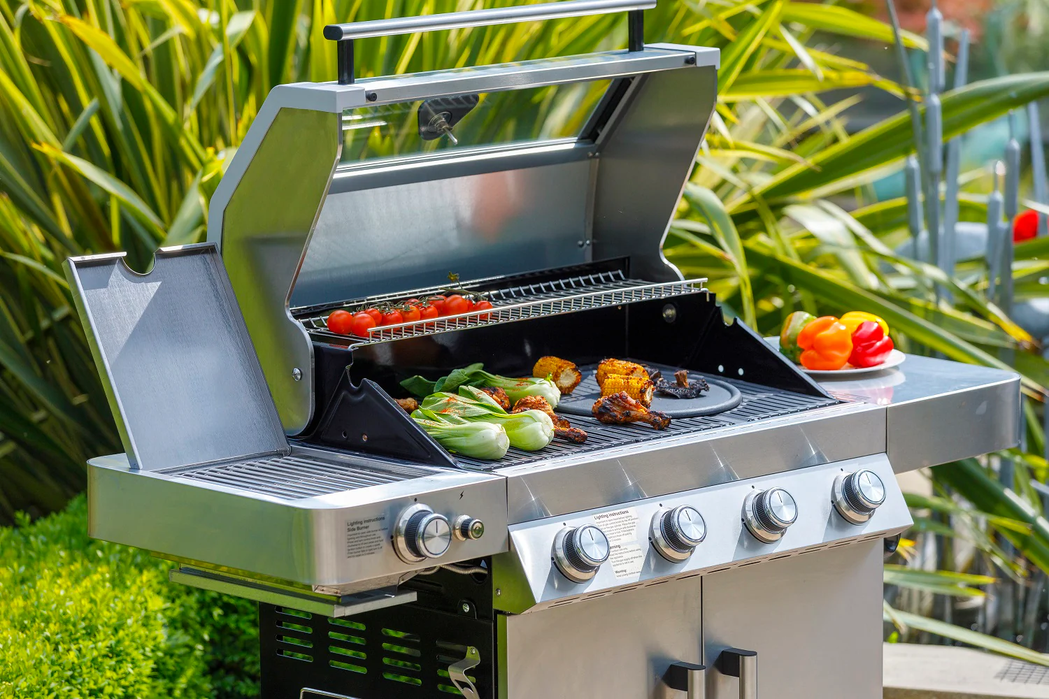 Grillstream Gourmet 4 Burner Barbecue / BBQ Gas Powered Hybrid with Side Burner & Steak Shelf Stainless Steel