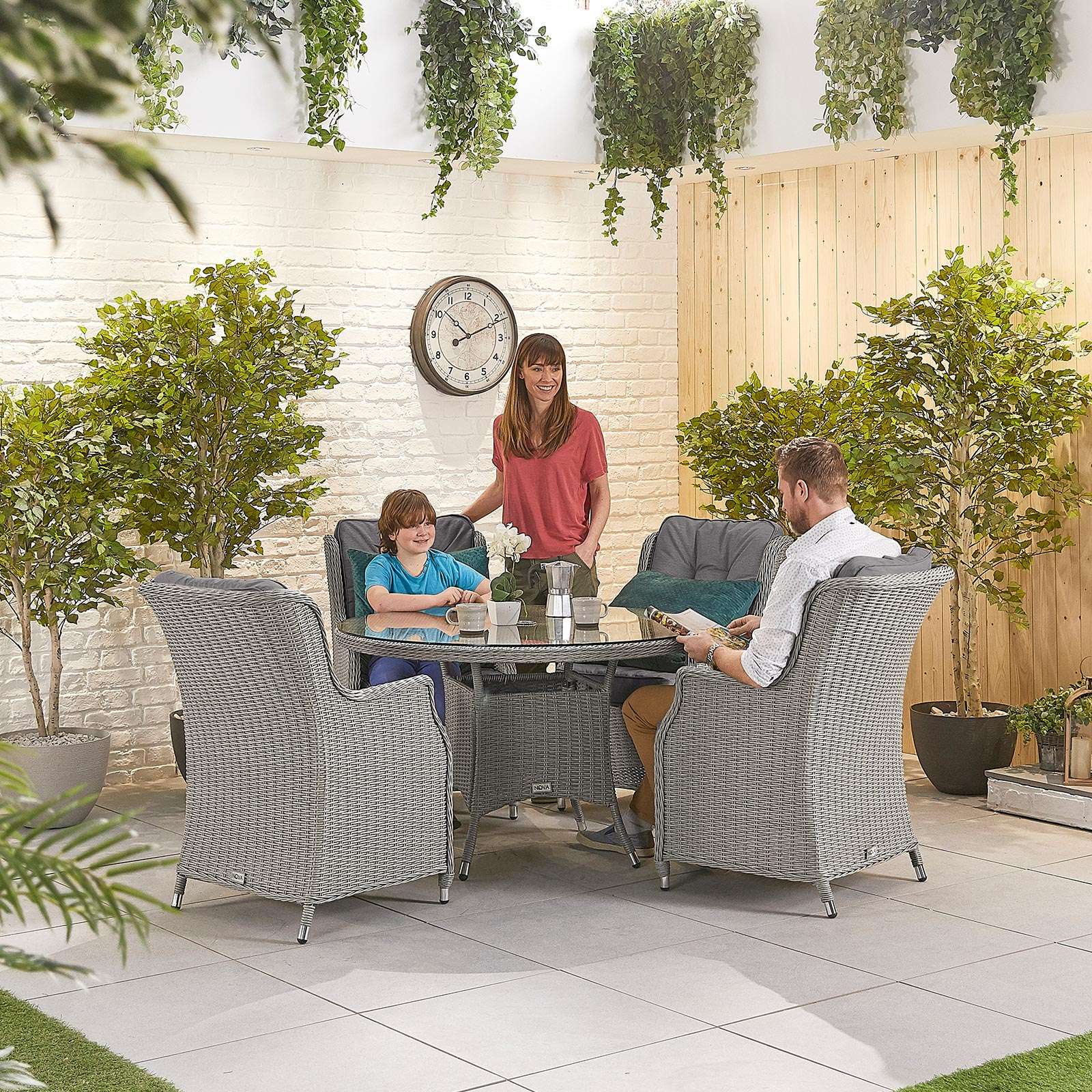 Nova Outdoor Living - Heritage Thalia 4 Seat Dining Set with 1.2m Round Table White Wash Grey Rattan